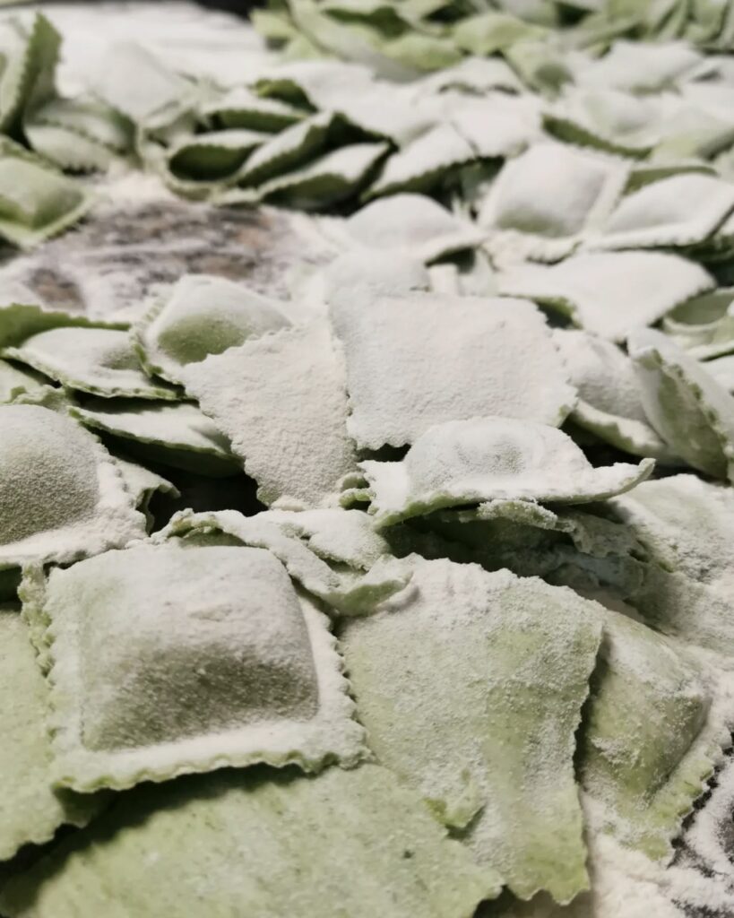 Deliciosos ravioles elaborados con pasta fresca artesanal, rellenos con ingredientes de la mejor calidad. Su textura suave y sabor auténtico los convierten en la elección perfecta para disfrutar de una comida italiana casera y gourmet.